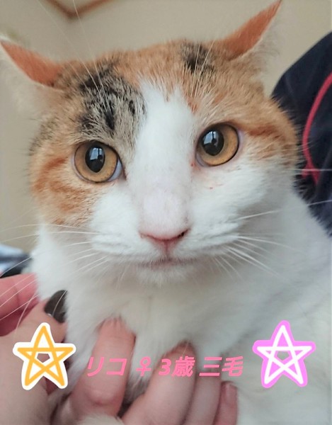 | 特徴(性格など) | 仮名:リコちゃん 毛色: ミケ 性格:おっとりタイプ。 一番どっしり構えてる感じ。 性格がそっくりなので、おそらく姉妹だと思われます。 人懐っこくて、3匹ともみんな優しい性格です。 何処でもさわらせてくれます。 エイズ・白血病ウイルス検査陰性 ワクチン接種済み ノミダニ駆除済み 便検査済み トイレしつけ済み 不妊手術済 前の飼い主さんから飼育放棄されました。 家族として迎え、生涯を共にして下さるお家、ご家族全員が脱走防止対策の意味を理解し行動できるお家とのご縁をお待ちしています。 |