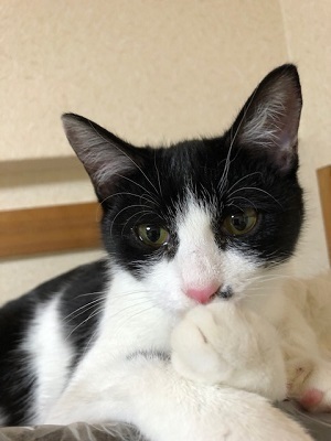 | 里親募集する理由 | 駐輪場で他の猫達とエサやりさんの許で暮らしていましたが雨が降り続き、風邪気味の様子でしたので保護しました。 | ||