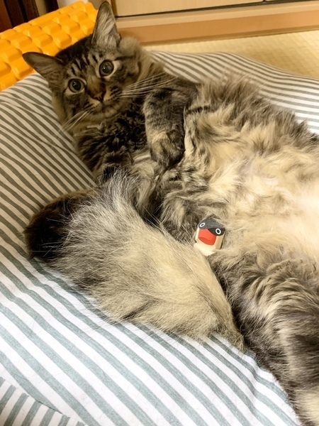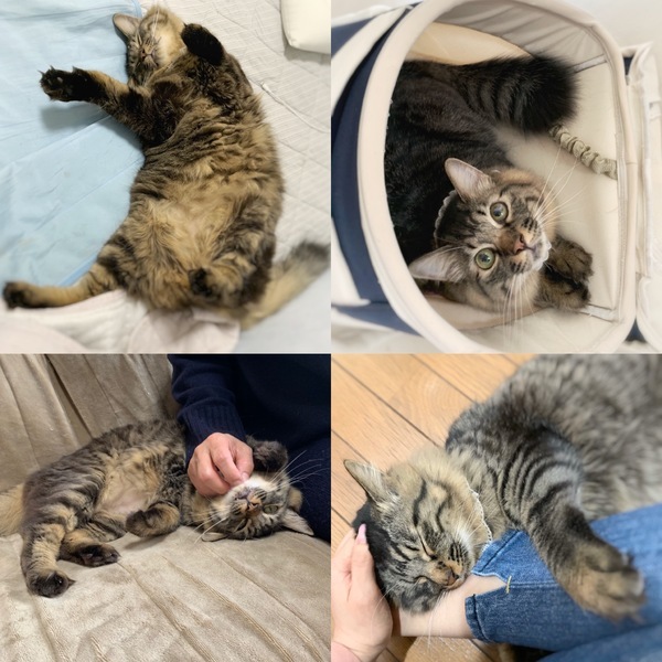 | 特徴(性格など) | 《大変お手数ですが、まずは健康状態欄や応募条件欄をご一読いただき、ご了承いただける方はご応募心よりお待ちしております。よろしくお願いいたします。》 麗しい外見に、中身は超絶人間好きの甘えん坊という萌えのかたまり! ふわもこ長毛、そして超ド級の甘えん坊!麗しのルイ王子です。 ☆外見☆ 耳の毛からしっぽまでフサフサ しっぽは特にフッサフサでリスみたい! 美しいグレーの毛並みは大変柔らかくて極上の触り心地。 我が家のお客様からも触ると歓声があがります。 ずっとモフモフしたい気持ち良さです… 手足が太く、お手手はモフモフのグローブみたいです。 ちょっと短めかも知れません。 全体的にもこもこのぬいぐるみのようで、ドチドチ歩いてる姿が笑いを誘います。 大型の長毛猫さんの血を引いているのかな?と思います。 大人っぽい豪華な見た目に反して声は未だに幼猫ちゃんで、撫でたり呼びかけたりした時や甘えたくて仕方ない時に、ミューミュー愛らしい声で鳴きます。 ☆性格など☆ 我が家の保護猫史上でもトップの、超ド級の甘えん坊!とにかく人間がだ~~~~い好き! 人にひっつくのがとにかく大好きで、人が一緒にいると大概の時間をベタベタひっついて甘え倒してきます(笑) 人間が寝ていると顔の周りにフワフワの身体がまきついている事も…(笑) 甘えんぼ猫さんと一緒に暮らしてみたかった方にはこれ以上理想の子はいないでしょう。 私もここまで人間大好きの甘えん坊は見た事がありません。 でも人間が構えない時はちゃんと分かって、お利口に待ってくれますし、 ひとしきり甘え倒して満足すると寝に行くマイペースさも兼ね備えていて、笑ってしまいます。 えっと、何年も一緒に暮らしてましたっけ??というくらい、初対面の人にも誰にでも懐き、甘え倒して大喜びします^^ 人見知り・場所見知りを全くしない奇特な猫です。 病院ですら診察台にゴロンと寝転がり、先生たちにゴロゴロスリスリするので、見た人からは「病院にいるとは思えない!」と驚き笑われます。 ふわふわ毛布や人間の着ている服にフミフミチュッチュするのが大好きな赤ちゃん。 大変愛くるしく、ご家族はキュン死しないよう気をつけないといけません(笑) 両手を上げた状態でゴロリン♪と仰向けに転がるポーズが得意。 甘えたいアピールとして、人間の近くに来てゴロンゴロンずっと転がっています(笑) もちろんお客様の前でもやります。本当に甘えたがりなのです。 根っから明るく、純粋で天真爛漫な性格です。 でもおっとりしていて落ち着いた部分もあります。 マイペースです。(笑) 始めて猫を迎えるご家庭にも自信を持っておすすめできる、非常に暮らしやすい子だと思います。 ましてや見た目も中身も仕草も可愛すぎるため、一緒に暮らすと夢中になる事うけあい! とにかく人が大好きで人に甘えられさえすれば満足するタイプなので一匹飼いにも向いていますし、 先住さんの性格にもよると思いますが、他の猫さんともきっとうまくやっていけると思います。 新入りの猫がシャーシャー威嚇していても、気にした素振りもなくすぐ近くで寝転んでいるのにはびっくりしています。 同じFIVキャリアの先住さんがいるお家、また、理解ある方でしたら、もうひとりの兄弟と一緒に迎えていただけるのも大大大歓迎です! ☆☆☆日頃の様子は以下をご覧ください☆☆☆ ツイッター http://twitter.com/chatmi6 ブログ http://chachandaisuki.blog.fc2.com/ 【健康状態】 極めて良好です。 食欲旺盛で快便。 (我が家ではトイレの失敗は一度もなく、固まる猫砂は何でもOK、システムトイレでも上手にできます。) ・検便問題なし ・ノミ取り・駆虫済み ・FIV陽性(キャリア) ・FeLV陰性 (2018年10月現在) ・3種混合ワクチン3回接種済み(2018年9月、10月、2019年12月) ・去勢手術済み(2019年1月) ・猫風邪治療済み その他、必要な基本医療ケアは全て終えております。 (今後、追加の医療ケアが発生した場合は必ずお知らせします。) |