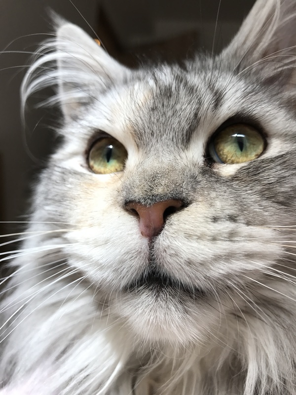 | 特徴(性格など) | 白とグレーの美しい毛並みの女の子です。性格は、茶目っ気もあり、穏やかでもあります。 | ||