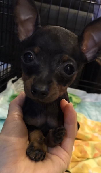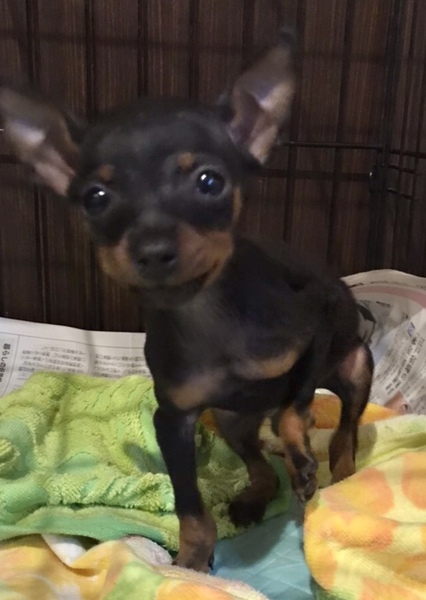| 特徴(性格など) | ミニチュアピンシャーのオス、まだ生後2か月の小さな子犬です。赤ちゃんみたいです。 左前脚の足首から先が外に曲がっています。 歩くことはできますが、びっこを引く感じです。 成長とともに筋肉がつき、他の三肢に力がつけば今より走れるようになるかもしれません。 3本脚でもなんら問題なく生活できるワンコは何匹も見てきました。 この子がそうなるかはまだわからないですが、そういう希望を持てる方にお願いしたいです。 |