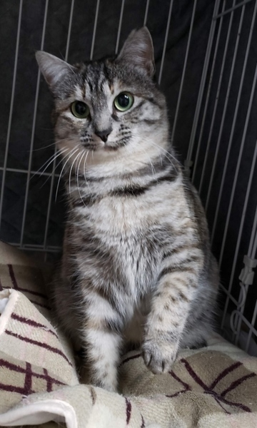 | 特徴(性格など) | 仮名: まりん 毛色: 三毛 性格: 人馴れした穏やかな子です。膝の上が大好きで甘えてきます。 猫じゃらしもすき、甘えん坊なので、環境が変わるとちょっと鳴くかもしれません。 |