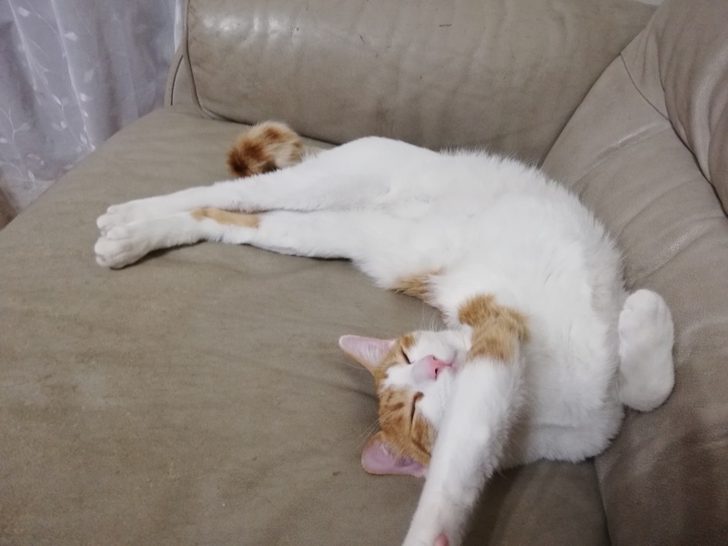 | 特徴(性格など) | 白茶の大きな子です。 尻尾は長く先が幸せのカギしっぽ。 人間には従順で爪切りも楽に出来ます。 一緒に募集中のサビ子のお兄ちゃんで、臆病な妹を守り続けて生活して来ました。 遊びも好きですが、猫じゃらしは妹優先にしてくれるので可哀想かな、と思いますが、やはり仲良く寄り添い眠っている姿は幸せそのものです。 ただし、プロレスタイムはスイッチが効かなく妹にも手加減出来ない様で妹に怒られています。 キッチンカウンターに座り私が通る時には待ち伏せして手を伸ばして呼び止めて顔を擦り付け甘えてくるので、とても可愛い子です。 |