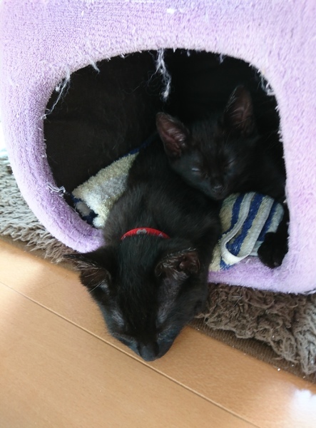 | 特徴(性格など) | 子猫らしく遊ぶの大好きヤンチャ兄弟! 赤い首輪の弟くんは既に里親様が決まっております。 青い首輪の「クロちゃん」は人間を怖がっていた弟くんを守ってくれる優しいお兄ちゃん。 クロちゃんのお陰で弟くんも人間を怖がらなくなりました。 お兄ちゃん気質とはいえまだまだ子猫。 眠たくなったら甘えてすり寄ってお膝でまったり 気付けばそのままそのまま寝ています(笑) ほんとはもっと甘えたいのかも… 普段仕事に出ていて、他にも猫を飼っているのでなかなかゆっくり甘えさせてあげられず… たくさん可愛がって頂けるご家族を探すことにしました。 あそぼーあそぼーと人間にも遊びを要求(笑) 先輩猫にも物怖じせず、怖いもんなし!のクロちゃんです。 https://ameblo.jp/mari800922/entry-12570124286.html 日々の様子をブログで紹介しておりますので是非ご覧になってください(*^^*) |