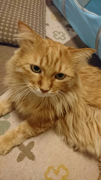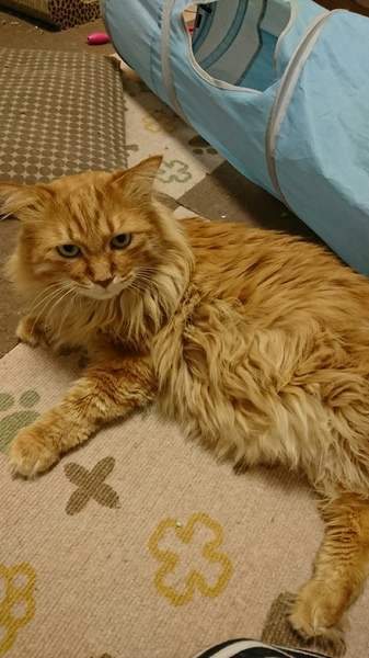 | 特徴(性格など) | とっても元気です。 エイズ・白血病ウイルス:陰性 3種混合ワクチン接種:済み 駆虫すみ(検便1回) 長毛でしっぽはまっすぐです。身体は大きく、手足も大きいのでとっても可愛いです。 ごはん大好き!遊び大好き!ブラッシングも大好きでお腹を出してゴロゴロします。 人間は大好きですが、環境に慣れるまで少し時間がかかる可能性があります。 猫は好きですが、遊びに誘う際に体当たりするので、他の猫に嫌われる事が多いです。 指の間の毛が長いので、フローリングで滑りやすいです。そのためか、高い所が苦手です。 |