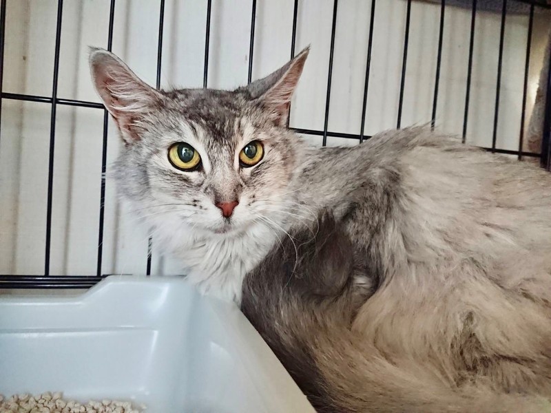 | 特徴(性格など) | メイさん メス(避妊済みと思われます。) 推定5~7歳位 サバトラ長毛 エイズ・白血病ウイルス検査陰性 ワクチン接種済み ノミダニ駆除済み 医療費(2/7現在)0円 飼育放棄でセンターに収容されました。 ツンデレの性格です。 自分から甘えてきすが、しつこくされるのは嫌いなようです。 飼われていたので、人には慣れています。 家族としてお迎え下さるお家とのご縁をお待ちしています。 |