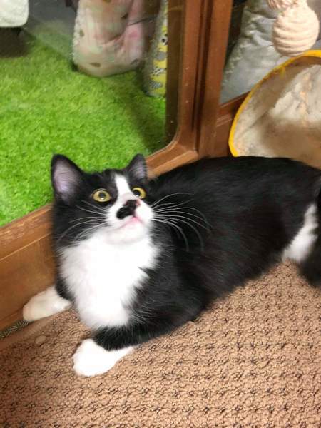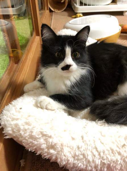 | 特徴(性格など) | 健康状態 *2019年10月8日時点 推定生後2ヶ月 体重1kg前後 ワクチン1回接種済み エイズ・白血病陰性 レボリューション済み *2020年2月時点 推定生後6ヶ月 2回目ワクチン接種済み 不妊手術済み 猫の特徴など お鼻のポッチ柄が可愛らしい半長毛の女の子です。 人間よりも猫の方が好きなようで特に同室のシャコと仲良しです。 抱っこはあまり好きではありませんが、おもちゃで遊んでもらうのは大好きです。 シャコと一緒のご縁を希望します。 スーちゃんの動画はこちら→https://www.facebook.com/1409294662483572/posts/2850043388408685/ シャコの募集ページはこちら→https://satoya-boshu.net/foster/detail.php?@DB_ID@=305604 |