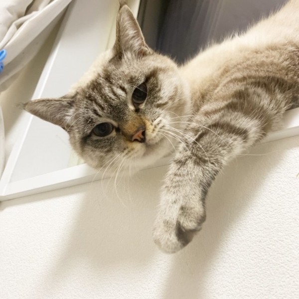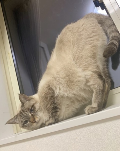 | 特徴(性格など) | 仮名:シャム太くん オス 年齢:推定3歳〜5歳 エイズ、白血病共に陰性 去勢手術・ワクチン1回・ノミダニ駆虫2回・検便2回以上済 性格:おとなしい性格です。 窓辺とハンモックとちゅーると撫でてもらう事が大好きです。 他猫とは、付かず離れず争わず暮らしています。 趣味・特技: ・段ボールハウスを一晩で解体する事。 ・ニャルソック。お外をしっかり見張ってくれます。 抱っこは嫌がります。 脱走防止対策を施しご家族全員が脱走防止に努めて下さるお家、ずっとの家族としてお迎え頂けるお家とのご縁をお待ちしています。 |
