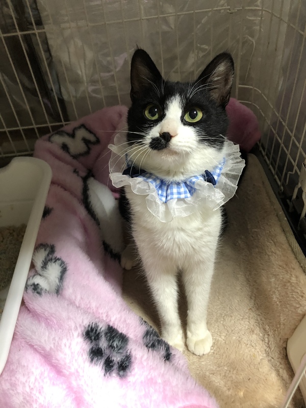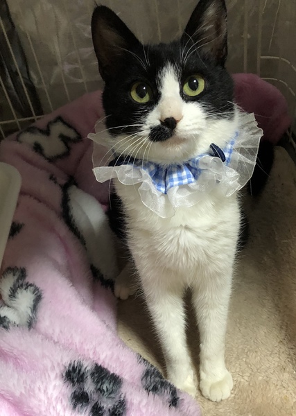 | 特徴(性格など) | 幸せを呼ぶ白黒ハチワレさんです。 性格はとても大人しく人懐っこい子です。撫でるとすぐにゴロゴロ言い始めます。 |
