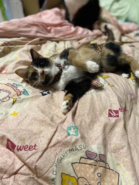 | 特徴(性格など) | 可愛くて、茶色い部分が多いミケ猫です。しっかり人馴れしていて、少し寂しがり屋です。 | ||