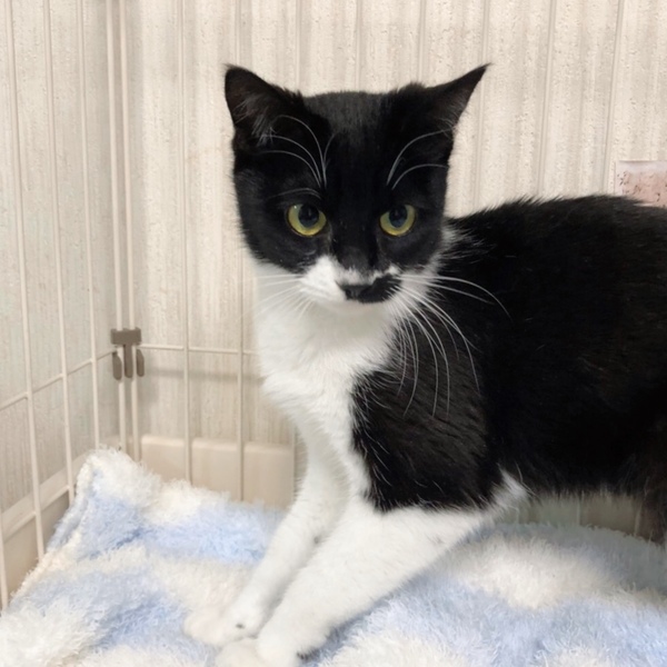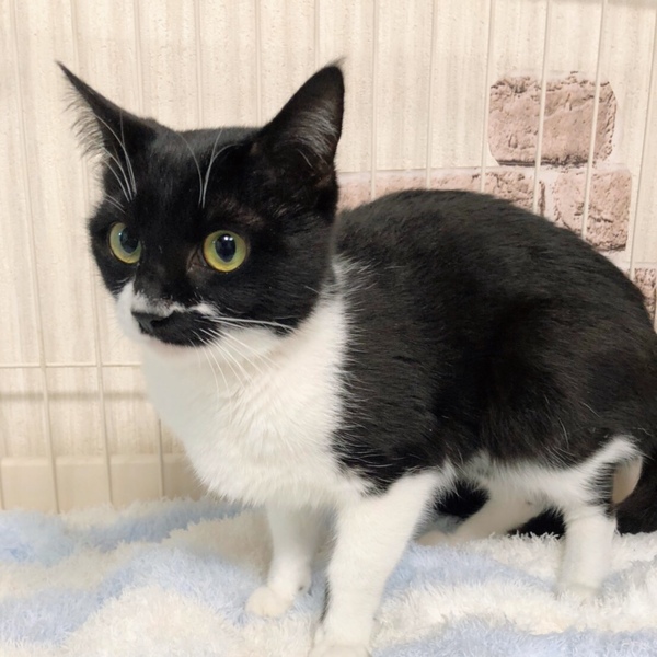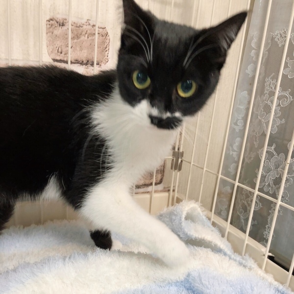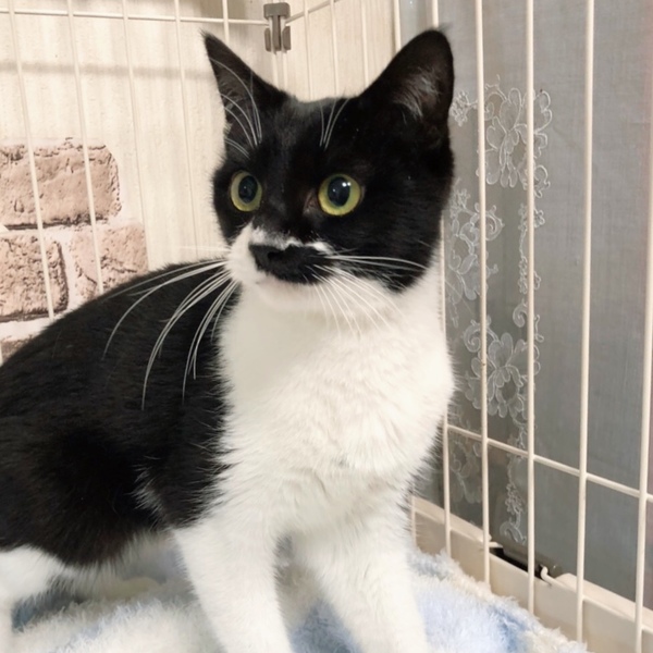 | 特徴(性格など) | ちょび髭模様がありますがれっきとした女の子です。 なんでもおもちゃにして遊びます! 人馴れ抜群です。 |