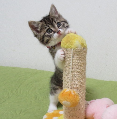 | 里親募集する理由 | 都外の某所、霙の降る寒い日にベショ濡れでうずくまっているところを、ネコを飼っている優しい方に見つけてもらえて、保護されました。 外の猫が子猫を育てるには寒い時期ですので、どこから現れたのか、置いていかれたのか、ご近所や警察に問い合わせたそうですが、判りませんでした。 保護したお宅で飼おうとしたのですが、先住ネコさんに受け入れて貰えず、里親さまを探したいと頼まれました。 |
