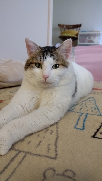 | 里親募集する理由 | ずっとうちの庭先にご飯をねだりに来ていたので、思い切って保護しました。去勢手術も済んでます。元気で、痩せてはいません。 ただ、エイズウイルスが陽性のため、我が家の先住猫とともに暮らすことができないため、里親さんを募集しています。 |