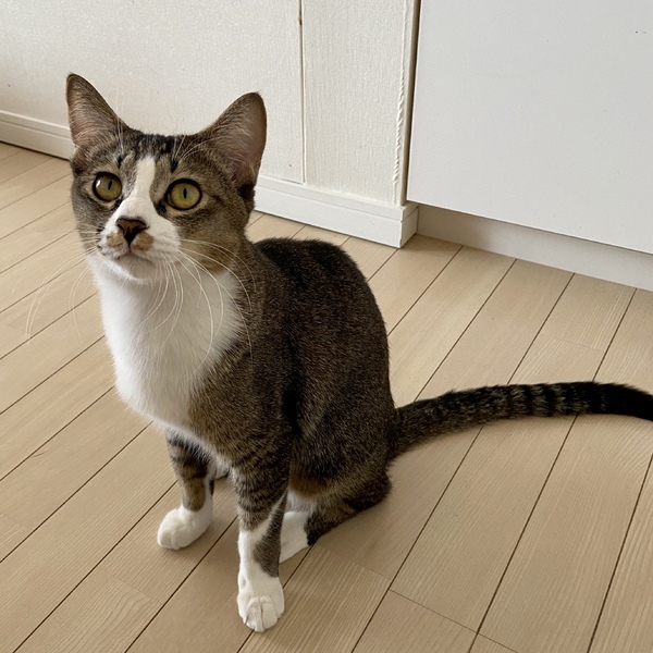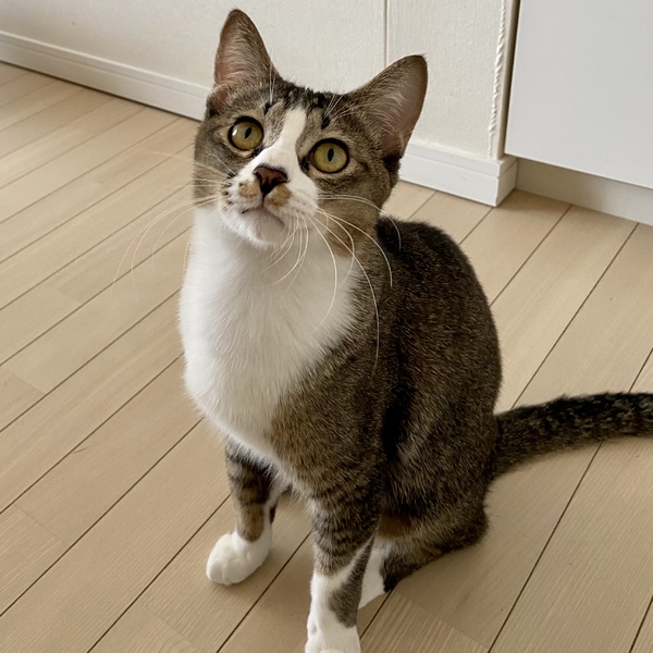 | 特徴(性格など) | キイくん 縞柄の少ないアビシニアンのような柄と前足のショートソックスがとても可愛いらしいです。 尻尾の長さは私の知ってる猫の中で最長かもです^_^ カッコいいです。 甘えん坊で抱っこも大好きです。 抱っこするとチューしたがります。 はじめは少し緊張しますが打ち解けるとワンコのように甘えます。 ほぼ大人サイズですが 身体の割にまだ子供っぽく落ち着きがありません。 キイくんに限らずですが猫は食べ物漁りをします。ゴミ箱は蓋付きに、食べ物は戸棚などにしまう必要があります。 そうした猫の習性に理解のある、猫に対して寛容な方にお願いしたいです。 1匹向きと思いきや他の猫とも仲良くできます。ただ猫同士の遊び方はヤンチャ坊主なのでおとなしい子はびっくりしてしまうかも知れません。 会わせ方など先住猫さんが気持ちよく受けられるようにしっかりとアドバイスさせていただきます。 健康状態 とても健康で元気です ただ少し歯肉炎がありステロイドを飲ませて治療を行いました。今は赤みもほとんどなく口臭もほとんどありませんが、猫は歯肉炎の子は多く今後も歯磨きやサプリメントは継続されることをお勧めします 去勢手術 ウイルス検査(エイズ・白血病)陰性 ワクチン(2回) 駆虫 検便 シャンプー 爪切り |