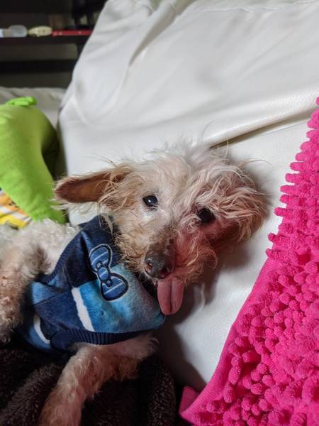 | 特徴(性格など) | 2キロくらいの細くて小さいトイプードルです 劣悪な繁殖屋で、手入れもされず、 ガリガリのボロボロにされるまで 使われ続けてきました 顎の骨は溶け、長年の栄養失調から歯もボロボロになり もう要らないと放棄されました 保護してケアし、今、甘えることを覚えて、いつも 膝に乗ってくるように、なりました この子のこれからを 家庭犬として 最後まで愛してくれる家族を募集します |