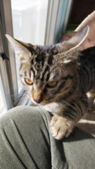 | 特徴(性格など) | ◆性格、特徴 ・キジトラですが、虎柄は薄いです。 体重は3キロ、小柄で尻尾が長く少しアビシニアンに似てます。 ・性格は人なれしていて、おっとりさんで甘えん坊です。 大人の猫(推定一歳半)なのでお留守番も問題なくて来ます。 初対面でも抱っこできます。 ・トイレ、爪とぎも教えなくても自分から出来るようになりました。 爪とぎは、猫用のもののみで行っております。 ・爪切りも問題なくできます。 ◆お願い ・健康状態は病院で調べてもらって問題ないのですが、お腹が少し弱いので 消化器をサポートするカリカリをお願いします。 値段が高いので、継続して購入できる方を希望します。 (例/一袋二キロで3千円以上など) ・猫缶、おやつはメーカー関係なく大丈夫です。 ◆ワクチン、避妊手術など ・ワクチンは接種済みです。 ・避妊手術は2月末に行う予定です。 ・白血病、エイズも陰性で問題ありません。 |