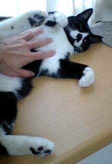 | 特徴(性格など) | ★お顔もお目目もまん丸な白黒ハチ割れ、お鼻周りのニンニク模様と 肉感的なむっちりボディ、左耳のさくらカットとすらっと長い黒 尻尾が魅力の美魔女、ブリジット(仮)です。 往年の大女優、ブリジット・バルドー似の美人だよね!?というのが 保護主の主張です(周りは「親バカ」と笑いますが…似てますよね?) ★とにかく甘ったれで、病院でも先生にゴロすりで、「心音が聞こえ ないよー」と笑われちゃうほどです。 隙あらば撫でて欲しくて頭突き&お膝にジャンプ!添い寝OK!腹モフ スーハーもウェルカム!のウルトラ甘たれ娘です。 ※甘ったれすぎてゴロン&腹モフの写真しか撮れませんでした… ★去勢手術済、駆虫済み、検便4回済み(異常なし)3種ワクチン2回済み。 (いずれも証明書あり)Felv陰性。 FIVのみ残念ながら陽性でしたが、無症状キャリアの場合、良い環境なら 一生発症せず猫生を全うする子も多いです。 |