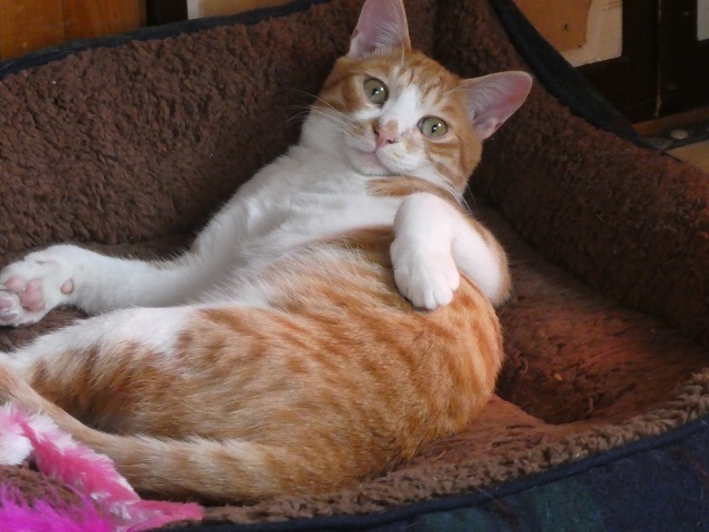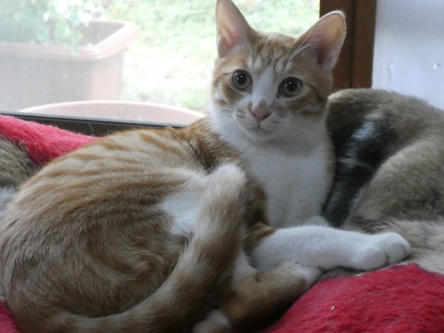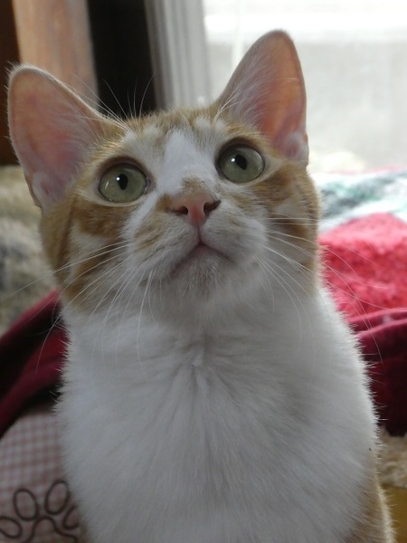 | 特徴(性格など) | 2019年4月下旬ごろ生まれ(仮名 チャー) 保護時、4匹のうちでこのチャーが一番抵抗していましたが、だんだんと落ち着いてきて今では抱っこもナデナデもクリアです(その時の気分によることもあり・笑) 環境が変わるとビビリな面が出るかもしれませんが、本来は甘えん坊なので必ず馴れてくれます。(特に女性には早く馴れると思います) 今のところ兄弟のクリほどにはベタ甘ではありません。 人との間にちょっと距離をおくタイプですが、ご飯の準備をしている時には足元を8の字に回ってスリスリします。 待ちきれずにふくらはぎを軽く「カプッ」と噛んだりも・・・^^; 懐かせるにはちゅ~るが必須です。 焦らずに最初は見守りながらお付き合いいただけるといいかな~。 食欲も好奇心も旺盛。 ネコじゃらし遊びが大好き、兄弟で競って遊んでいます。 |