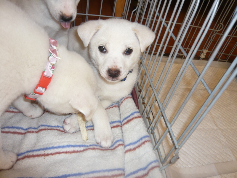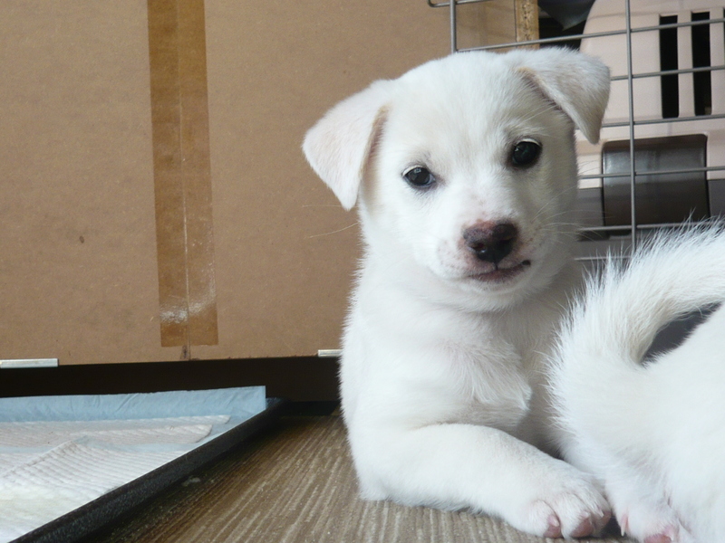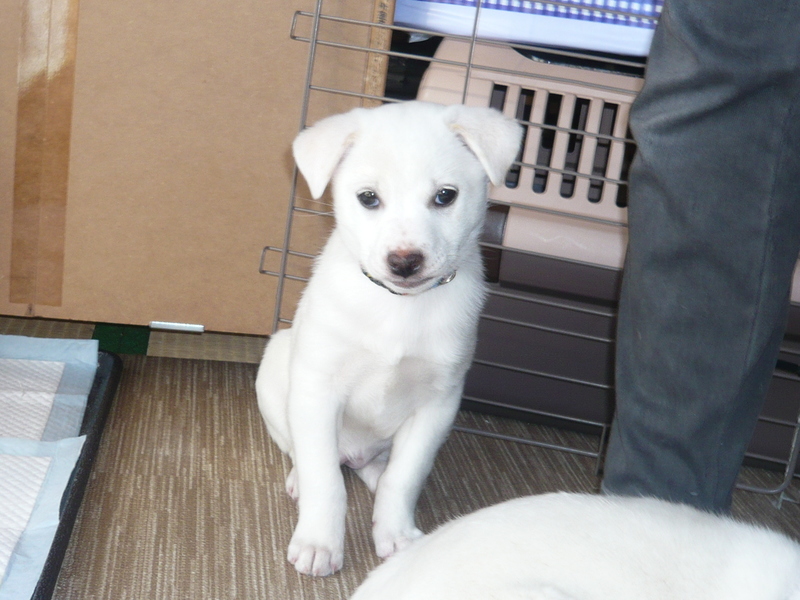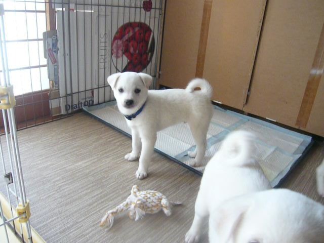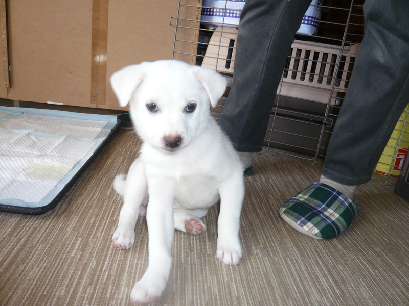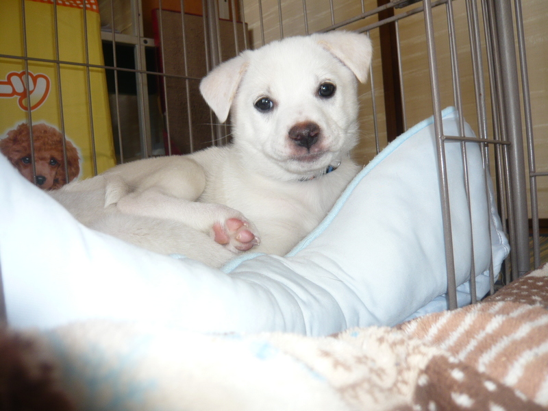 | 特徴(性格など) | 容姿も性格もチャーミングです。毛色は白です。 名前はスーちゃんと呼んでいます。 人懐っこく、抱っこが大好きです。 現在の体重は3kgです。成犬時は中型の小くらいだと思われます。 トイレはだいたいペットシートでしますが、場所が変われば失敗するかもしれません。 |