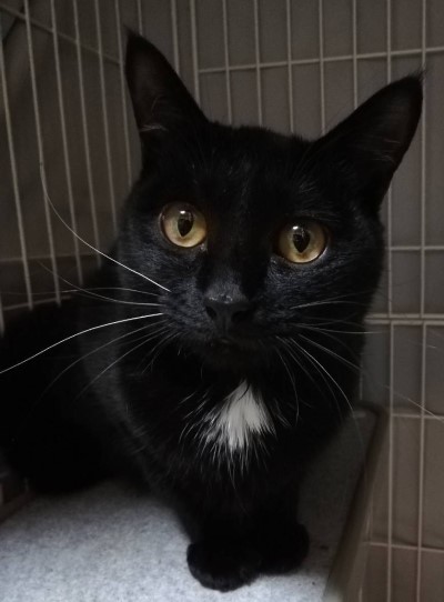 | 特徴(性格など) | 毛色:全身黒で胸元に白いポイント・ところどころに白 体重:2.7㎏ 健康状態:右側右後肢に軽い麻痺と弱視である以外は良好 駆虫・三種混合ワクチン接種済み エイズ・白血病の血液検査済み(陰性) 避妊手術済み 抱っこや撫でてもらうことが大好きな甘えん坊さん ワンちゃんとも仲良く暮らせます 呼ぶと仔猫のようなかわいい声でお返事してくれます |