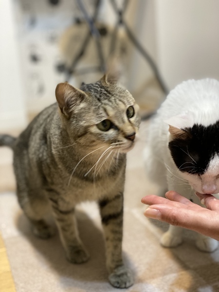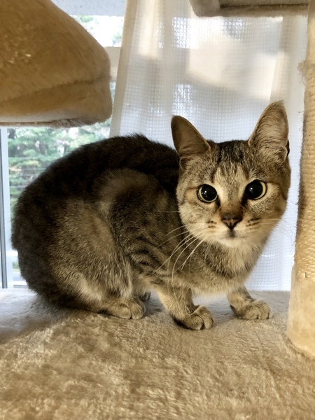 | 特徴(性格など) | ☆仮名は、保護した場所の名前を取って 「まるなみ」ちゃん! ☆尻尾の長い、綺麗な毛並みのキジトラの 女の子です。 ちっちゃな身体、ちっちゃなお顔、可愛い 寄り目が個性的♡ ☆ネコ大好き! 我が家の3匹の猫たちと仲良く遊んでるので先住猫さんのいるおうちにもピッタリだと思います。 ☆ちょっぴりビビリ… 外の環境にいたので、まだ部屋で急に近づくと逃げることがあり、まだ人馴れ修行中です。 でも気付くと足元に座っていたり、少しずつお家の子らしくなってきました! 保護主のインスタに沢山登場していますので、ぜひご覧下さい。↓ https://instagram.com/mun_ten_pochi?igshid=5q38509imacp |