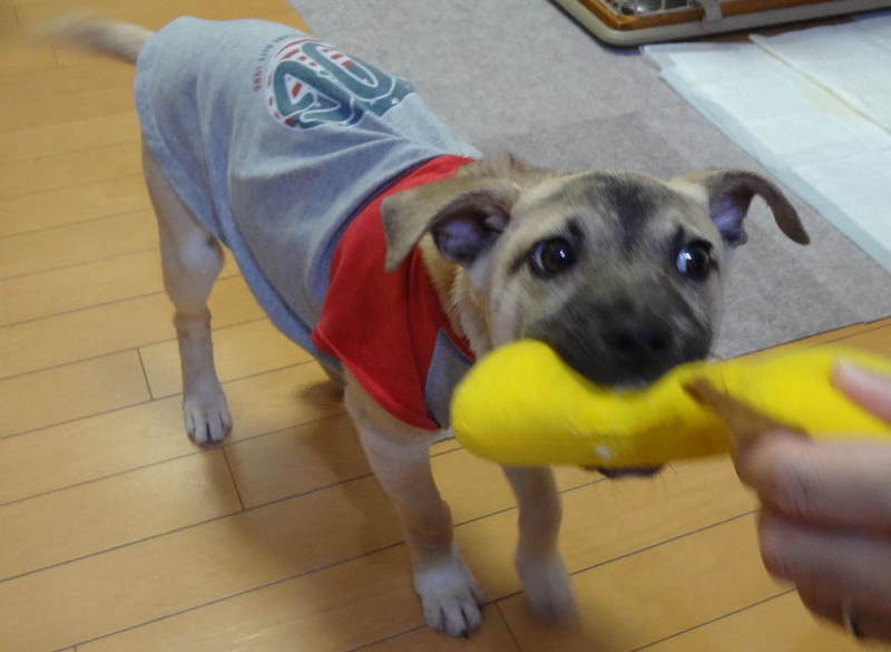 | 特徴(性格など) | MIX子犬の『ウノ』です。 (ちばわんHP掲載番号No.4023)←申込時は必ず犬の名前とこの番号を記載してください。 【毛色】 薄茶・黒 【体重】 5.3kg(3/17現在) 【状態】ワクチン接種済、ノミ・ダニ駆除済、駆虫済、マイクロチップ装着済、狂犬病予防接種済 【人馴】問題なし 【性格・その他】 垂れ耳にウルウルした瞳がチャームポイントの男の子です。 お世話をする人の後を追い、膝の上に乗りたがるベタベタの甘えっ子です。 食事は、1日2回ドライフードを与えています。食事中に食器を触っても怒りません。小さいおやつでも、手から優しく食べられます。 トイレは、シートの認識があり大小共に室内ででき、ほぼ外しません。 閉じ込められるのが嫌いで、サークルやクレートを激しく噛み吠えます。就寝時と留守番時はフリーで過ごしています。 今のところ、人が困るようなイタズラはありませんが、まだ若いのでこれから変化する可能性もあります。 散歩での引きはありません。人と一緒に上手に歩けるよう勉強中です。 動きが読めませんので、逸走防止には細心の注意が必要です。 車は苦手なようで、少しずつ慣らして行く必要があります。 まだいたずら盛りの子犬ですので、ウノと向き合う時間をたくさんとっていただけるお留守番の少ないご家庭を希望しています。 引き続き完全室内飼育で、脱走・逸走防止への細心の注意、毎年のワクチン接種やフィラリア予防などの健康管理を必ずお約束していただけるご家庭で、終生家族の一員として可愛がってくださる方からのお問い合わせをお待ちしております。 なお大変申し訳ありませんが、単身の方や同棲カップル、主にお世話をなさるのが高齢の方のご家庭の場合はお断りさせていただきますのでご了承ください。 【預かり場所】 神奈川県川崎市 【日記】104Eの部屋 http://blog.livedoor.jp/t104e/ |