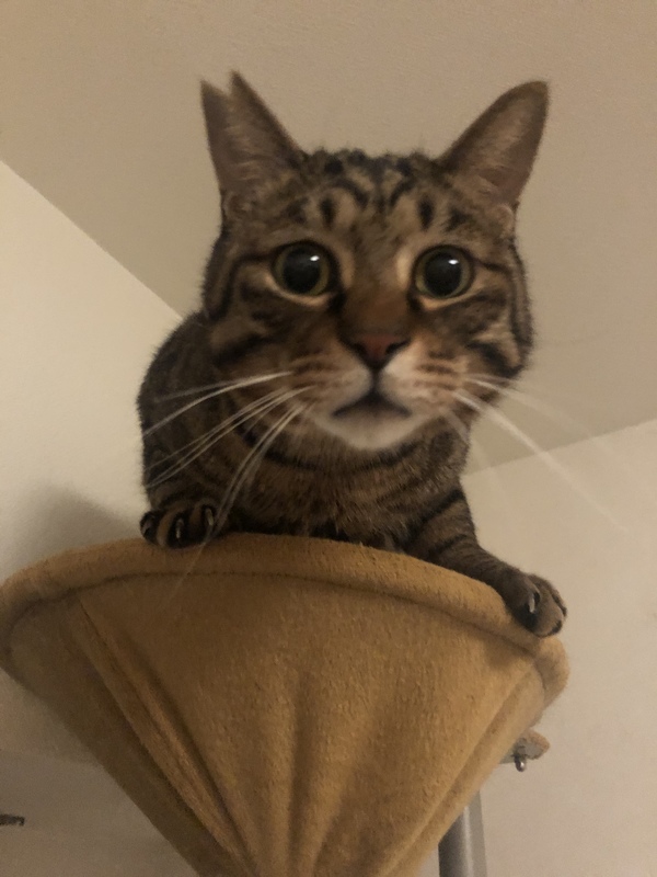 | 特徴(性格など) | 遊んでもらうより、甘える方が大好きな2歳の男の子です。 とにかく構ってさんで、人のあとをつけるのが大好きなストーカー体質のキジトラくんです。 おしゃべりが好きなので、ハワイ語で声という意味のレオという仮名にしました。 とにかく食いしんぼうさんです。肩車できます!お膝や寝ているお腹の上にもみずから乗ってきてくれます。 募集している子猫のハナちゃんとも仲良しです。 まるで自分の子供のように可愛がっています。指をおっぱいのようにしゃぶられても舐め舐めする面倒見のいいこです。 |