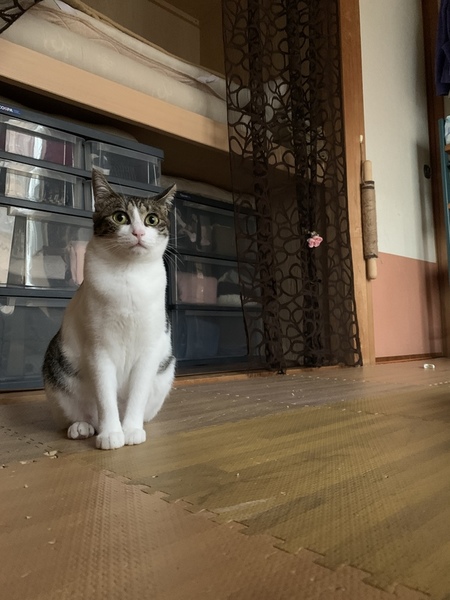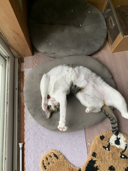 | 特徴(性格など) | 体重3.4キロ小ぶりな身体です。打ち解けるのも早く物怖じしないタイプです。人馴れ猫なれ抜群で、甘えん坊かと思いきや面倒見の良いお姉さんでもあります。病院も怖くないようで先生にも擦り寄っていきます。遊ぶのが大好きです。日中はゴロゴロと過ごし夕方から活発に動いています。あごニキビあり、イソジンを薄めた液で拭いてケアしています。治ったり再発したりしています。少し歯肉炎あるようですが医師に相談した所、手術する程のものでもないと言われました。現状維持できるようデンタルケアサプリを食事に混ぜて与えています。 | ||