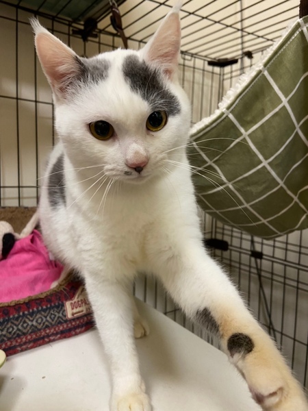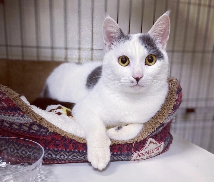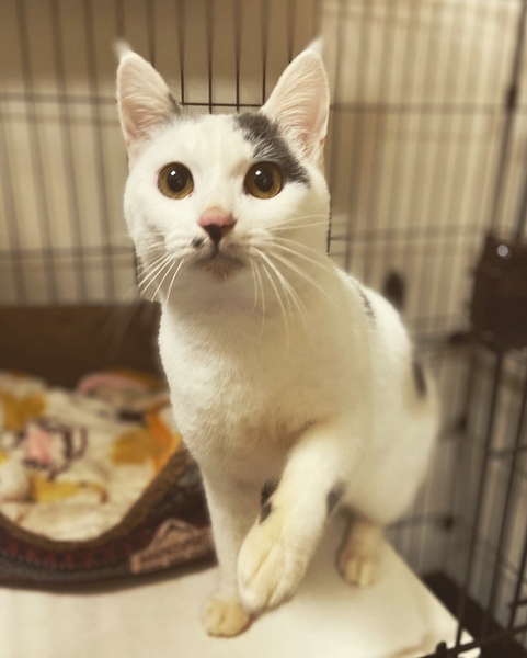 | 特徴(性格など) | 口の横にあるホクロがムロツヨシのようだからと、ムー君と名付けました。甘えたくてスリスリして来るイケメン猫さんです。食いしん坊ですが、運動神経は今ひとつ(笑)。抱っこはあまり好きではありませんが、ナデナデ大好きな甘えん坊さんです。 エイズ白血病陰性、去勢手術済み、ワクチン接種済み、駆虫済み、マイクロチップ装着済みです。 |