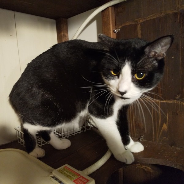| 特徴(性格など) | 仮名:コウタ 毛色:白黒 瞳の色:濃い黄色で、琥珀のような模様が入っているように見える印象的な瞳をしています。 尻尾:短めの曲がり尻尾 性格・特徴:むくむくの毛質でとても大柄な子です。 八割れ&あご髭の個性的な模様。 お髭で小顔効果がある(?)にもかかわらず、まんまるで大きなお顔です。 最初から威嚇やひっかきは一切ありませんが、あまりスキンシップをとらずに育ったため、触られるのはまだ慣れていません。 が、自分から人の近くに寄ってくるので、決して怖がっているわけではありません。 これまで辛い思いをしてきた分、愛情たっぷりに育ててくれる方を希望します。 仲がいい子と2匹で迎えていただけるとありがたいです。 システムトイレのしつけ済み。 右耳に桜カットあり。 恐らくもともと、右耳だけ少しカールした形なのだと思われます。 右耳が少し前に倒れているように見え、カットされた耳先がカールしています。 |