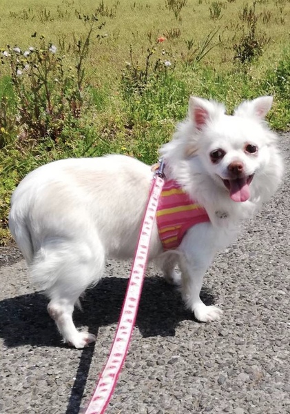 | 特徴(性格など) | ■特徴(仮の名前:詩【うた】) チワワ ♀ 推定4〜5歳 体重4.8キロ ■性格・暮らし ・少しビビリな面もありますが、慣れると甘えてきます。 ・体のどこを触っても大丈夫です。 ・トイレシートの認識があります。 ・ケージでお留守番・就寝ができます。 ・両後脚が膝蓋骨脱臼ですが、日常生活に支障はありません。 ■今までに行った医療行為 ・避妊手術 ・フィラリア抗原検査(ー) ・血液検査 ・混合ワクチン接種 ・マイクロチップ装着 ・スケーリング ・検便 ・耳ダニ検査(ー) |