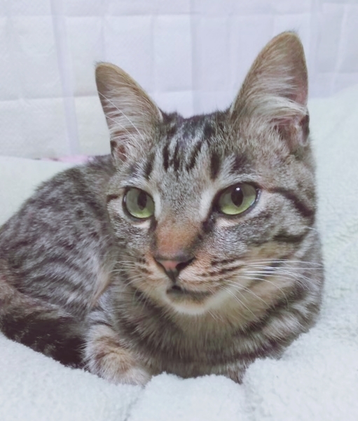 | 特徴(性格など) | 2019.8.26生まれ(推定) 毛色:キジトラ 元気で物怖じしない女の子。 他の猫達にシャーされてもゆっくりその場を去り、また暫くすると追いかけたりします。 食べることが大好きで、ゴハンの用意をしていると、ハスキーボイスで催促してきます♡ 小さいボールを転がして遊ぶのが大好きな えんちゃん♪ エイズキャリアではありますが、発症はしていません。 現在、預かりボランティアのお家で、他の猫達と一緒に寝たり遊んだりと、元気いっぱいに過ごしています。 一生懸命生きているえんちゃんを家族として迎え入れて頂ければと思い募集をしています。 猫エイズについて https://ameblo.jp/nekoken-chiba/entry-12589987638.html |