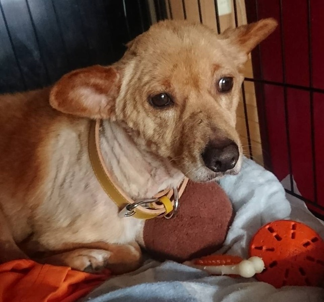 | 特徴(性格など) | 人が来るととても喜び、盛大に歓迎してくれます。 まだ一般家庭で暮らした事はありませんが、比較的すぐに慣れてくれるかもしれません。 体重10kg位 体長43cm位 避妊手術済み 写真は被毛が極端に汚かった為、一時的に刈っています。 |