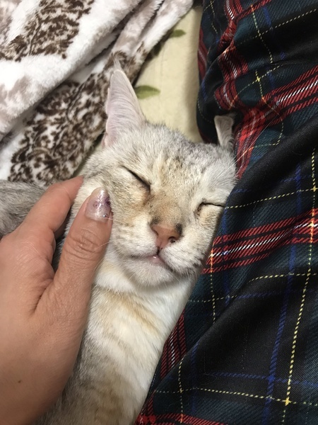 | 特徴(性格など) | レッドタビー 多頭の中にいますが、仲良くなれる猫が少なく、人間がとても大好きで、帰宅すると1番に迎えにきます。寝る時も離れません。遊び方がわからず、構ってほしい時は甘噛みしますが、甘えん坊で背中に乗ってきます。 |