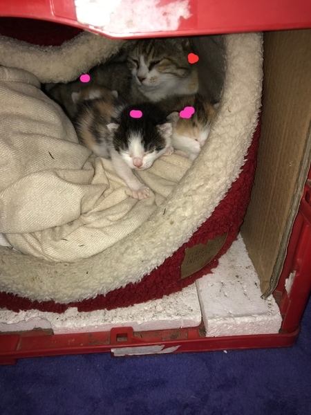 | 里親募集する理由 | 野良猫が家の庭で仔猫を 産んでしまいました。 私のうちは他に保護した猫が いるため飼えないので募集 いたしました。 まだ産まれて1週間から 2週間程度で3匹います。 引き渡しは仔猫が離乳食を 食べれる様になったらなど 様子をみてからと考えております! 写真はこんなような 柄ですとの事ですので 実物は写真を撮ったら載せます! 性別もまだオスかメスか わかりません。 大事にして頂ける方、 よろしくお願いします。 |