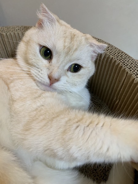 | 特徴(性格など) | 色はクリーム、とても可愛いお顔をしてます。 ブリーダーから引き取ったばかりなのですが、他の猫と関わるよりも1匹で好きな場所でのんびり過ごしていることが多いです。 多頭飼育も大丈夫です。 足の指が奇形ですが、生活には全く支障はありません。 どうか、きなこちゃんに会いに来て下さい。 |
