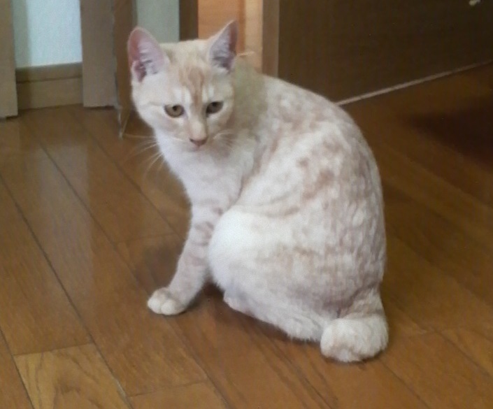 | 特徴(性格など) | かわいい茶トラ系の女の子です。縞模様はあまりハッキリしていません。 シッポは短くてキュートなかぎしっぽです。 猫じゃらしが好きで、投げると取りに行き咥えて持って来ます。 人見知りの怖がりです。 現在うちの猫達と暮らしているので、他の猫には馴れるのが早いかも知れません。 馴れるととても甘えてきてスリスリしてゴロゴロ言います。 抱っこは苦手です。 |