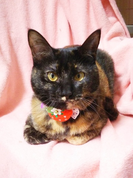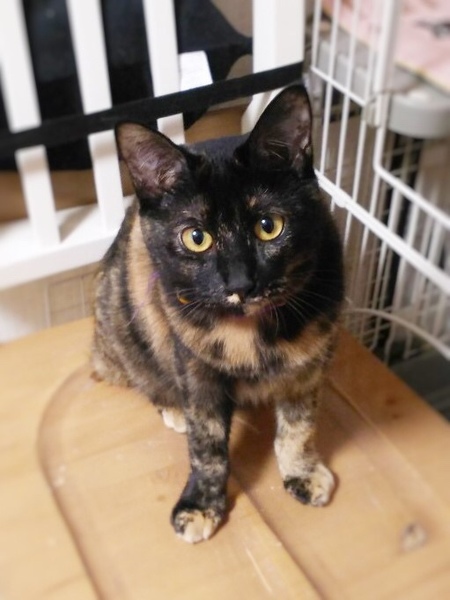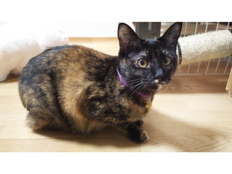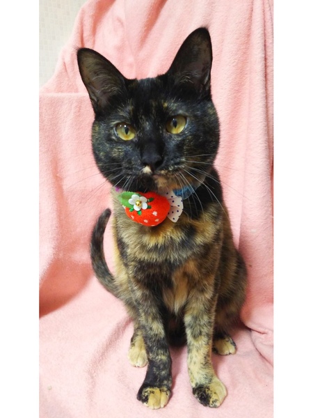 | 特徴(性格など) | サビ柄の女の子です。 小さい頃から預かりさんにミルクで育ててもらったので、人懐っこいです。 大人しく控えめですが、高いかわいい声で鳴いてスリスリ甘えて来てくれます。 わんちゃんの様に、投げたおもちゃを取りに行って持ってくる遊びが出来ます。賢くてかわいい子です。 どうかエボシちゃんに会いにきてください。 |