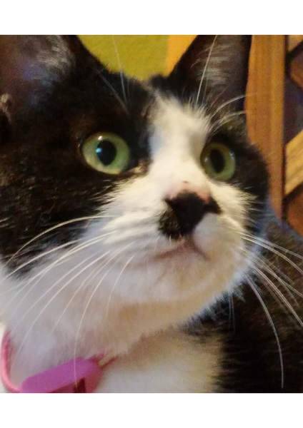 | 里親募集する理由 | 休みの日、なにげにトイレの窓を開けると一台の軽自動車が停まっており、反対側の歩道にいた女性が私の顔を見るなりスクッと立ち上がりました。 何をしているのだろうと思いトイレを済ませてから、他の場所から見ると自動車も女性もいませんでした。 それから五分くらいしてからでしょうか?うちの子がやたらと外を気にしているので外に目をやると・・・ピンクの首輪をした白黒の猫がいました。 その場を見た訳ではないですが、なんとなく繋がりますよね? 我が家には10にゃん(高齢や闘病中、療法食の子が5にゃん)いますので、この子をかわいがってくださる里親様を募集したいと思います。 |