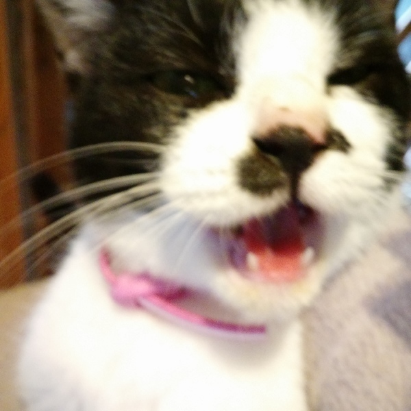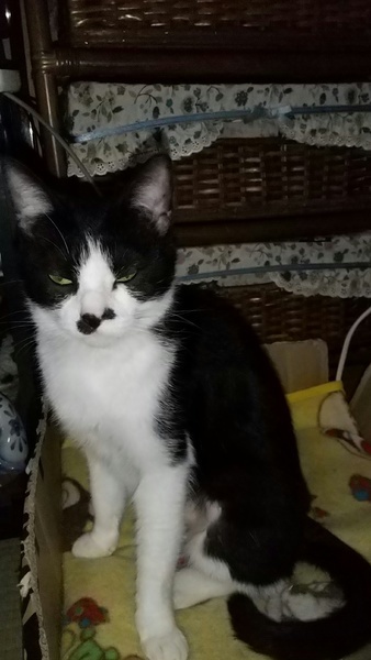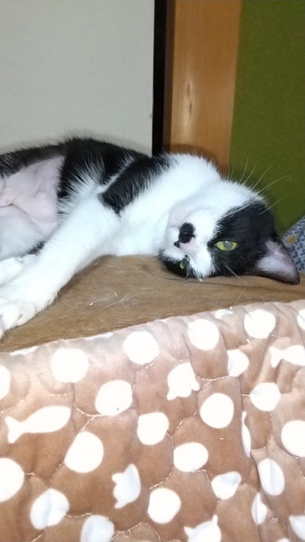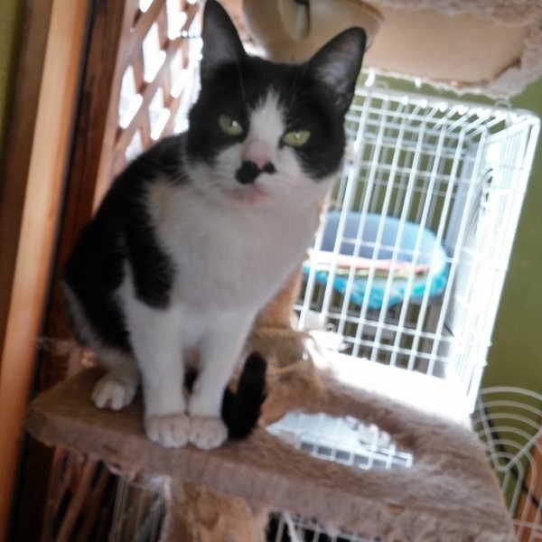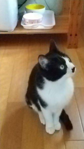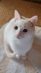 | 特徴(性格など) | 白×黒 とてもにぎやかに鳴きます。 人慣れしていて、スリスリ、ぬりぬりしてきますし、なでると大音量のゴロゴロがきけます。 膝上に乗ってくれるのはいいのですが、じっとしていないので爪が痛いです。 だっこもできますが、とても「いらちん」で、爪切り・目クソ取り等はさせてくれません。 少し気の強いところがあるので、先住さんとは相性をみる必要があると思います。 |