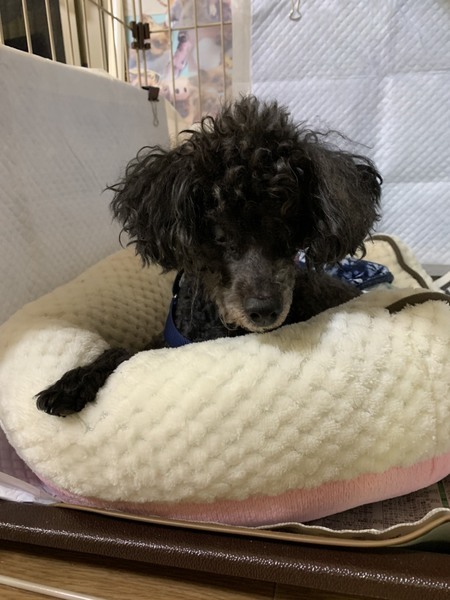 | 特徴(性格など) | 名前ーピーターパン 犬種ートイプードル 性別ーオス♂ 毛色ー黒 年齢ー12歳くらい 体重ー3.4kg 性格ー人にも犬にも全く問題ない良い子ちゃんです。 白内障で目があまり見えていませんがお散歩にも行きます。視力はゼロではないとは思います。 夜の散歩は懐中電灯で行く道を照らしてあげると歩けます。 歩き方はゆっくりとヨチヨチです。 歯石の状態が悪かったので、去勢手術の時に全部歯を抜かれましたが、硬いフードも食べます。今は、すごく痩せているので今1日3回フードを与えていますが、全て完食です。 トイレは基本的に散歩で済ましますが、室内では失敗あり。トイレシートの認識はありません。 女の子わんこのお尻を舐めようとして追いかけるぐらい元気です笑 年齢から考えてそんなに長く一緒にいることができないかもしれません。 この子の余生をゆっくり過ごさせてくれる里親さんの元に行けることを祈ります。 |