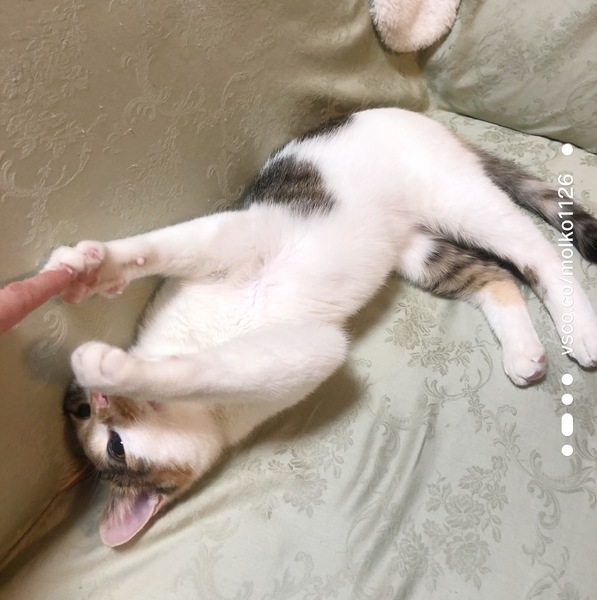 | 特徴(性格など) | ★小柄ですが成猫です。 仮名:おこげ 毛色:三毛 種類:マンチカン(中足マンチカンの特徴を備えていますが、MIXである可能性があります) 体重:2.9kg 月齢:1歳 日々の様子はツイッターでご覧いただけます! → @molko4126 優しいご家庭にお迎えいただけることを切に祈っています。どうぞよろしくお願いします。 ★見た目 筋肉質で小柄な体格です。 ちいさな体、大きな頭、太くて短い足、小さな丸い耳、大きな肉球を持っています。 足の長さですが、いわゆる「中足」タイプに該当すると思われます。 尻尾も前腕まで届くほどに長いです。 我が家で飼っている和猫の頭は逆三角形に近いのですが、おこげちゃんのお顔は楕円形に近いです。 目の形もまん丸で、可愛らしい肉まんのような印象です。 3キロ未満と非常に小柄ですが、マンチカンとしては平均的な体重です。 これ以上(太ることはあっても)骨格自体が大きくなる可能性は低いです。 ★性格 名前を呼ぶと返事をします。手を伸ばすとトコトコ近づいてきます。 これまで何匹も猫を保護してきましたが、毎回返事をして近づいてくる猫は初めてです。 好奇心旺盛で活動量も多いので、小さなお子さんがいる家庭でも楽しくやっていけると思います。追いかけっこが大好きです。 初めての人にも抱っこをせがむほどの社交性があります。 足が短いのでジャンプに失敗することもあります。 ステップや椅子を近くに置いていただくなど、タワーの高さを多少調整していただいても良いかもしれません。 他の猫ちゃんとの猫プロレスが大好きです。でも攻撃的ではなく、ひたすらじゃれたりくっついていたりするのが好きな様子です。 たまに我が家の先住さんから教育的指導という名の猫パンチを受けていますが、一度もやりかえさずに大人しくしています。 いたずらや爪とぎトイレの失敗はしません。爪とぎは猫用の物を使ってやります。 一緒に生活したらきっと幸せな気持ちにさせてくれる、そんな子です。 一人(または1匹)がストレスになってしまう子です。 先住さんまたはお子様がいらっしゃるか、お留守番が少ないご家庭だとありがたく存じます。 |