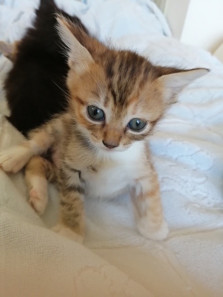 | その他(譲渡条件など) | 2匹育てて下さる方。 生涯大切に育てて下さる方。 自宅まで車でお迎え可能な方。 トイレは、覚えました。 茶とらちゃんは、カリカリご飯を食べる様になりました。 黑ちゃんは、まだ、母猫のミルクのみです。 黑ちゃんは、目やにがたまりやすく、1日数回ふいてあげてます。 性別は小さいため分かりません。 あくまで、我が家は一般家庭です。 業者ではありません。 細かい事気になさる方にはお願いしません。 |