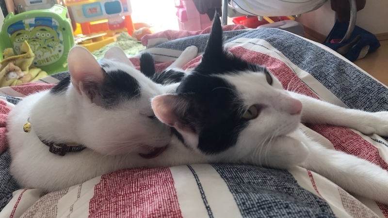 | 特徴(性格など) | 通称 くろちゃん (色)ハチワレ黒と白のツートン♂ (性格)慣れるまでは警戒心ちょっと有。 慣れればかなりの甘えん坊さん。 通称 しろちゃん (色)白の黒しっぽ♂ (性格)子供が騒いでもすり寄ってくる甘えん坊さん。 人のこと大好きな人懐っこい子。 2匹ともすり寄ってきて膝の上に乗るのが大好き |