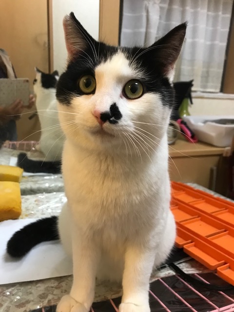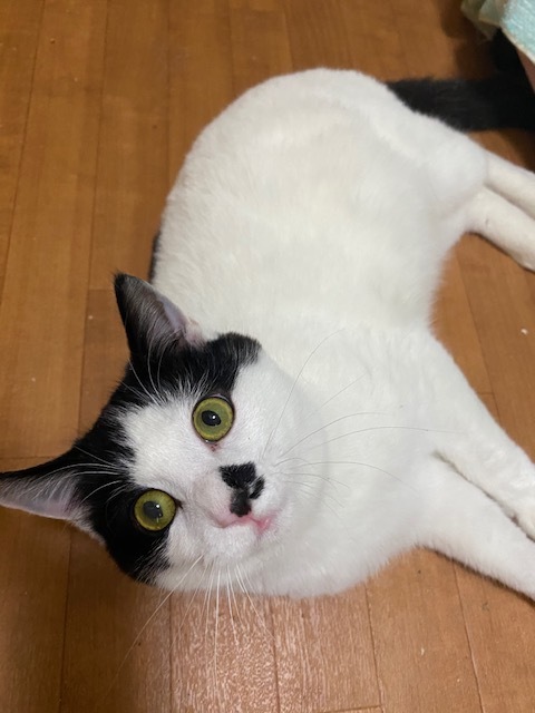 | 特徴(性格など) | 白に黒の模様があり、抱き心地の良い子です。ひとなつこくて甘えん坊です。 | ||
