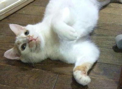 | 特徴(性格など) | まるも君 お顔も体もまん丸です。 見た目どおりの気の良い男の子です。 気弱なところも可愛いです。 強い猫にバシバシやられても一生懸命舐めてあげる子です。 外にいた時に恐い思いをしたので、 しばらくは隠れて出て来なかったのですが 現在はベタベタすり寄ってきて、足元でひっくり反っています。 最初は人見知りしますので気長に接していただける方にお願いします。 |