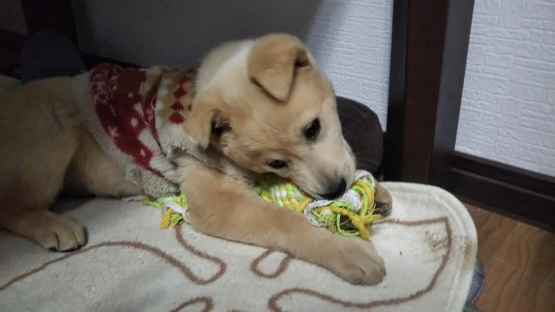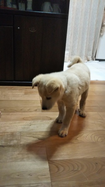 | 特徴(性格など) | とっても人懐こい性格のゴール君。ゴールデンの子犬みたいな色なので仮名はゴールにしました。 駆け寄ってきます。大人の犬達とも仲良くしていますが、人間のほうが好きみたいで抱っこすれば おとなしくなります。 |
