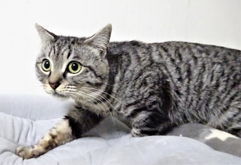 | 特徴(性格など) | 仮名: ポンくん(オス) 毛色: キジトラ、尻尾長い 性格: 威嚇もなく大人しい男の子です。 クリクリの目で見つめますので近づくと、スリスリ甘えてきます。 初めはケージに入る事に慣れなくて、大きな声で鳴きましたが、慣れたら鳴かなくなりました。 ケージから出ても探検して好きな場所に行く程度で、走ったりはあまりしません。 他の猫とは付き合いが無かったせいか、喧嘩はしませんが、どちらかと言えば、知らん顔してやり過ごすようです。 ノミ取り済 検便済 駆虫済 3種混合ワクチン済 去勢手術済 猫エイズ・白血病ウィルス検査はともに陰性です。 |