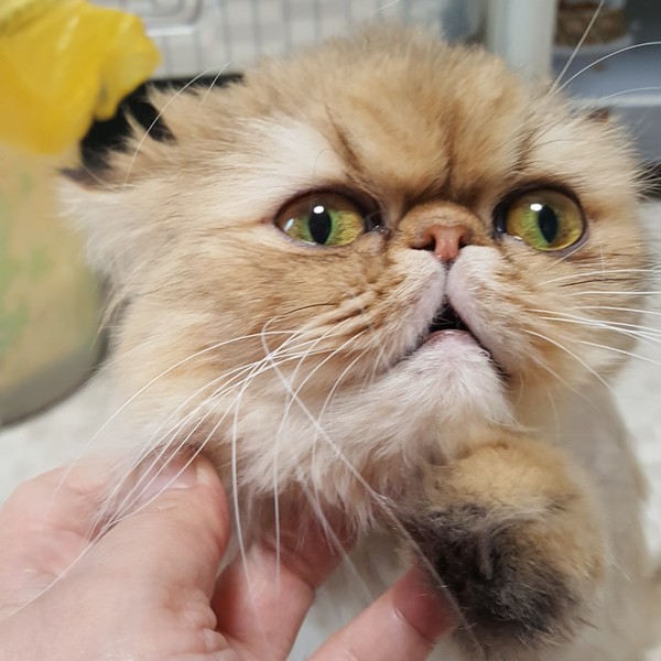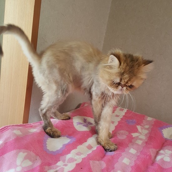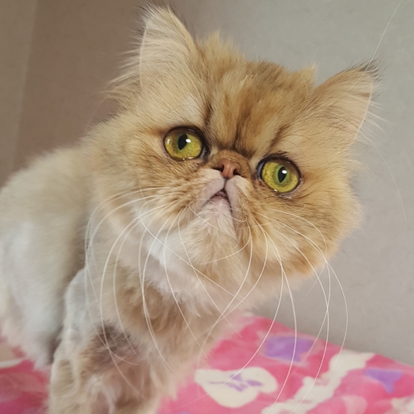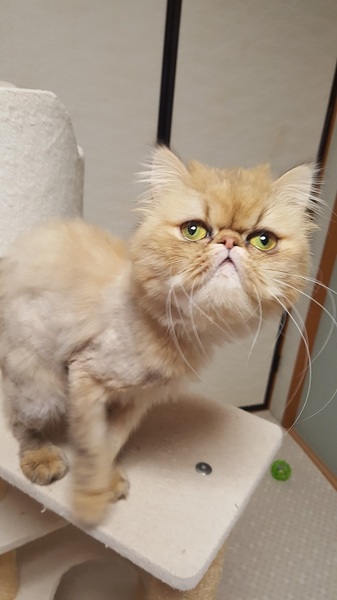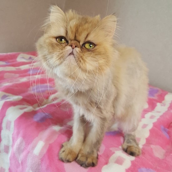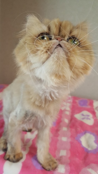 | 特徴(性格など) | ペルシャの女の子、2歳。仮名を「梅ちゃん」と言います。 ちょっとびびりですが、慣れると頭をスリスリ、ゴロゴロ言って甘えてくれます。 顎、顔周りを撫でられるのが大好きです。何とも言えない可愛いお顔です。 猫じゃらしで遊ぶのが大好きです。 鼻ぺちゃ特有の症状で涙が出やすいので、時々拭いてあげて下さい。 真菌の為、丸刈りにされましたが、ようやく完治しましたので、募集を開始しました。 ふわふわの梅ちゃんになるまで時間がかかるかと思いますが、 その過程を暖かく見守って下さるご家族をお待ちしています。 |