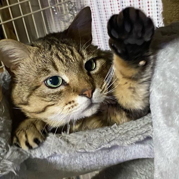 | 特徴(性格など) | あんよの太いキジトラ猫です。 慣れない人がしつこく触ろうとするとシャーッ!&猫パンチが繰り出されることもありますが、カリン君から向かってきて攻撃してくる事は殆んどありません。 ゆっくり接していけば慣れてきます。 慣れれば甘えてきます。抱っこも出来ます。 他の猫の世話をしていると「こっちに来てくれ~」と言わんばかりに鳴いて呼びます。 甘ったれなおじさん猫です。 目を閉じた時の顔が何とも味わい深く、某国民的アニメの猫仙人様に似てるね、と評判です。 |